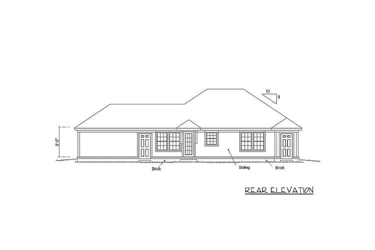 The vaulted ceiling visually enlarges the main living area beyond what you’d expect from a 1,481-sq-ft home, while standard 8′ ceilings in the surrounding spaces keep construction straightforward and budget-friendly. This balance of volume where it counts and simplicity elsewhere is part of what makes the layout feel both cozy and airy at the same time. 4