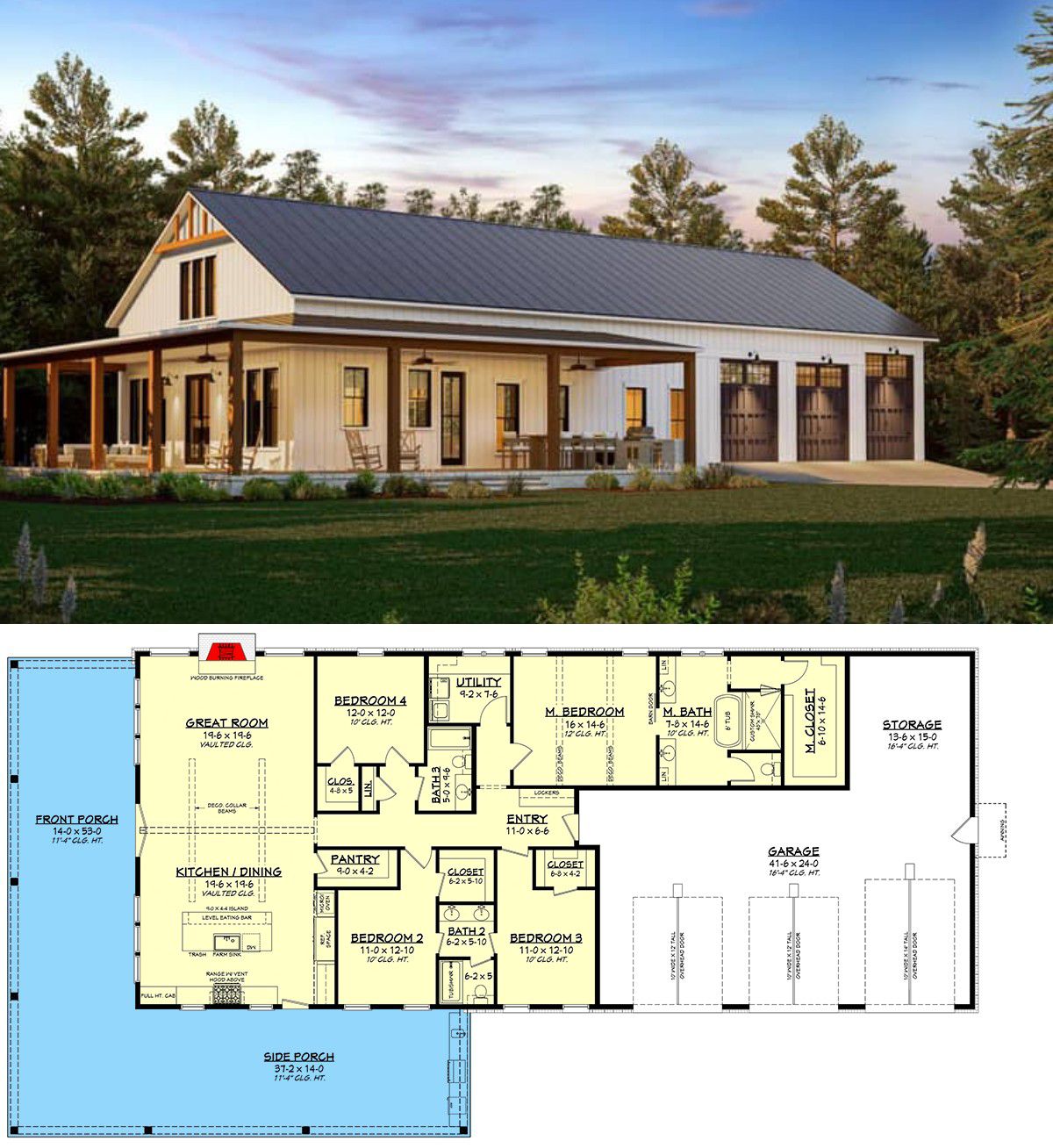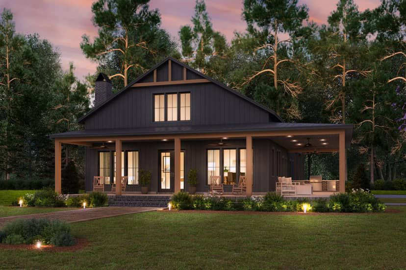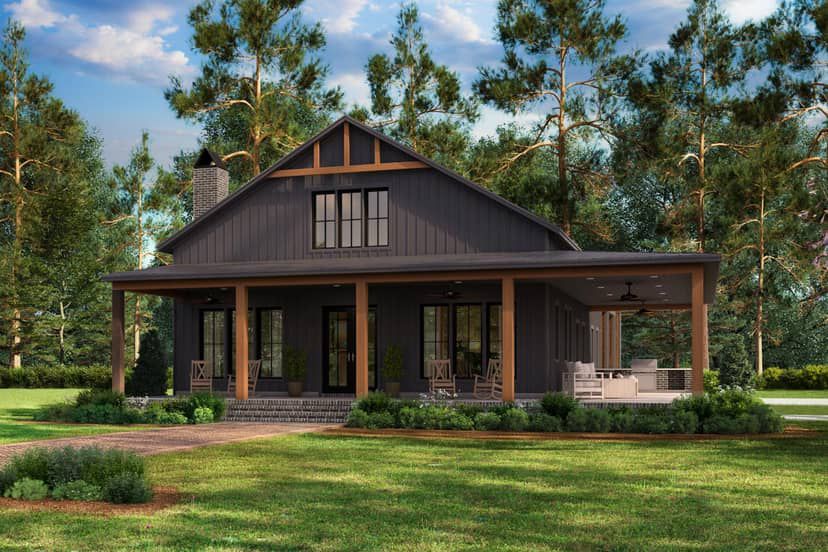 This plan shines if you want a home that feels open and airy inside, with strong indoor–outdoor appeal and a roomy garage/workshop — ideal for rural or semi-rural plots, especially if you value storage or plan to keep equipment, tools or vehicles. The wrap porch and large windows suit climates where enjoying the outdoors is part of daily life.