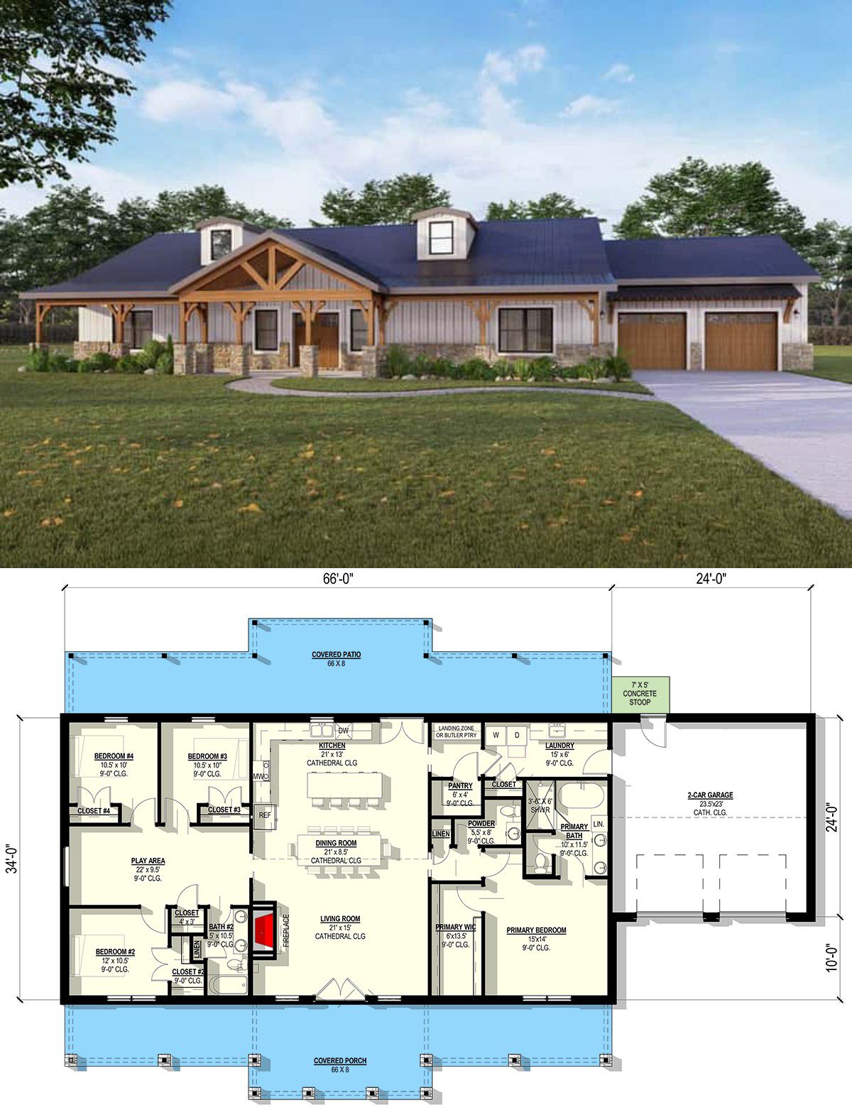 4-Bed Modern Farmhouse with Wrap-Around Porch & Vaulted Living — Spacious, Inviting & Family-Friendly (~2,576 Sq Ft)