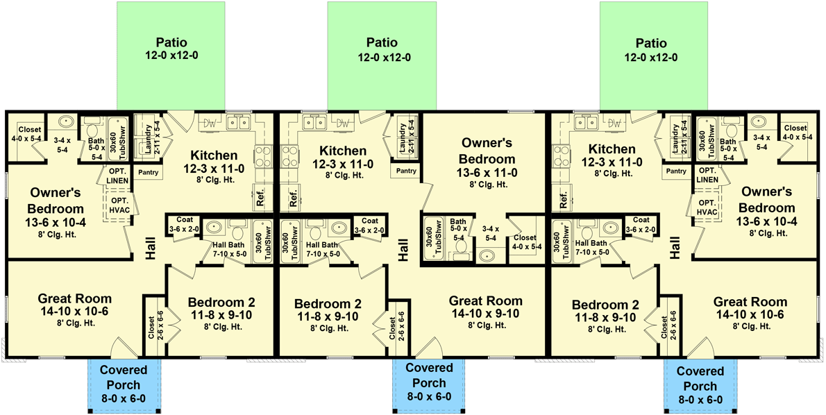 • Other features per unit include built-in storage (closets), and access to a patio for grilling plus a covered front porch for entry — giving the units a sense of privacy and functionality despite being part of a shared structure. 8