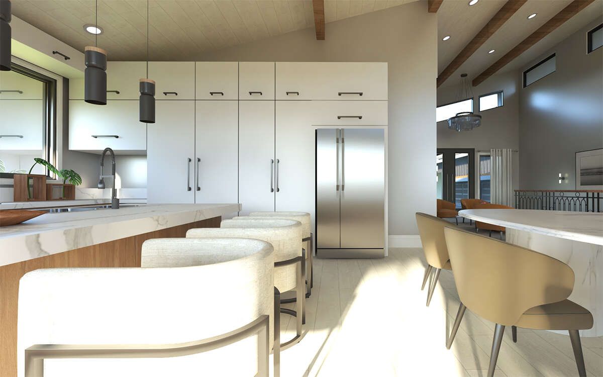 This layout keeps the kitchen fully connected to the main living areas while maximizing usability.