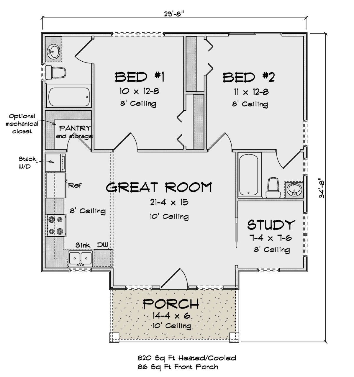 This contemporary home proves that compact living can still feel comfortable, private, and stylish. With two bedrooms, two full bathrooms, and an open main living layout, it offers a surprisingly complete lifestyle in just 820 square feet. If you want a low-maintenance home that feels modern, functional, and easy to enjoy every day, this plan is a strong choice that delivers maximum comfort in a right-sized footprint.