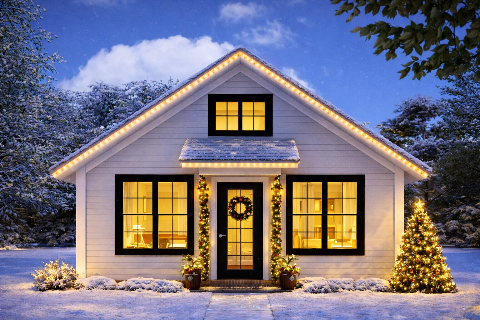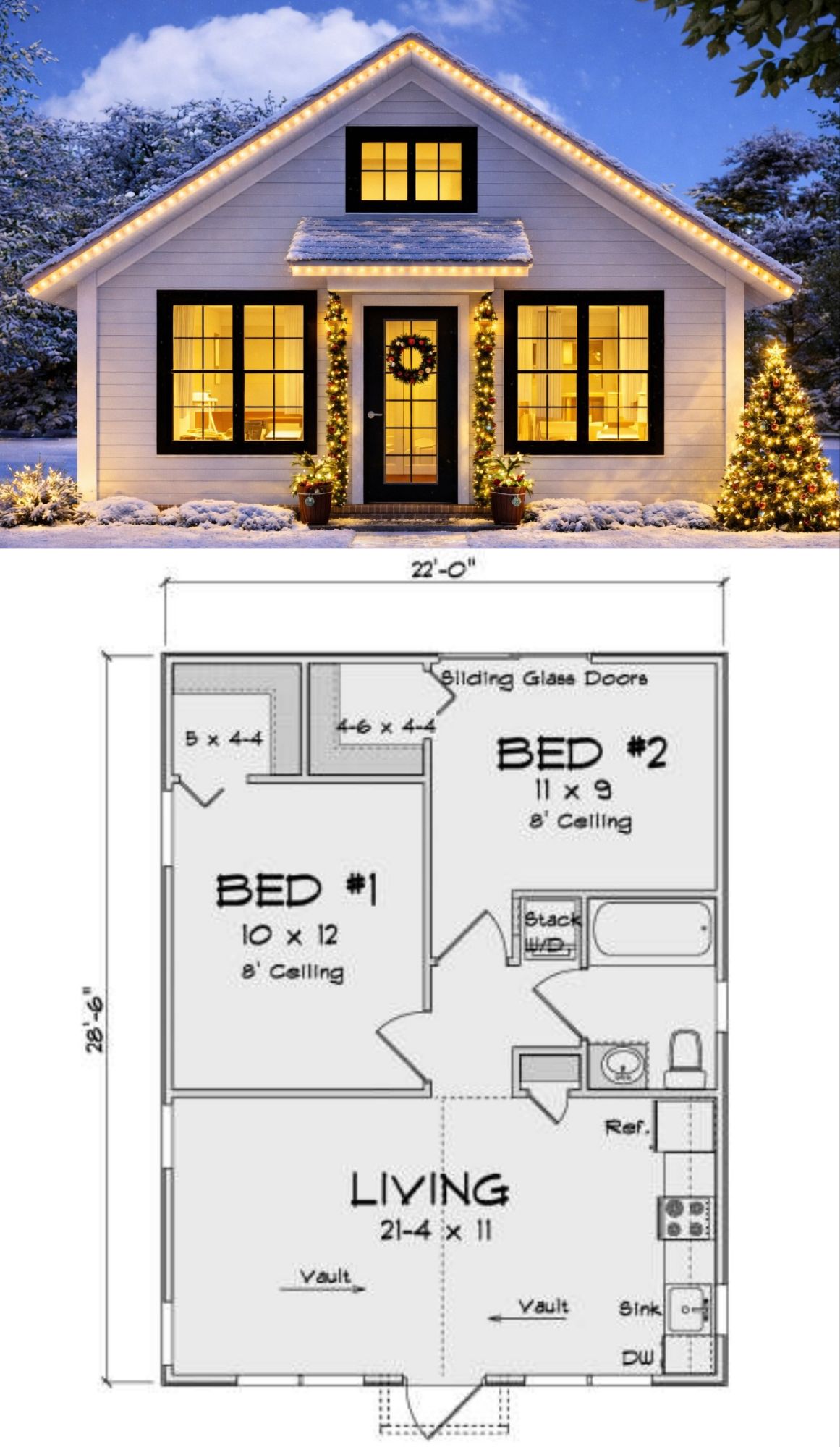 This cottage would look amazing with simple landscaping. A short pathway, a few plants, and soft outdoor lighting can completely elevate the first impression. Because the home is compact, even small touches—like a couple of shrubs or a little porch decor—make a huge difference in curb appeal.