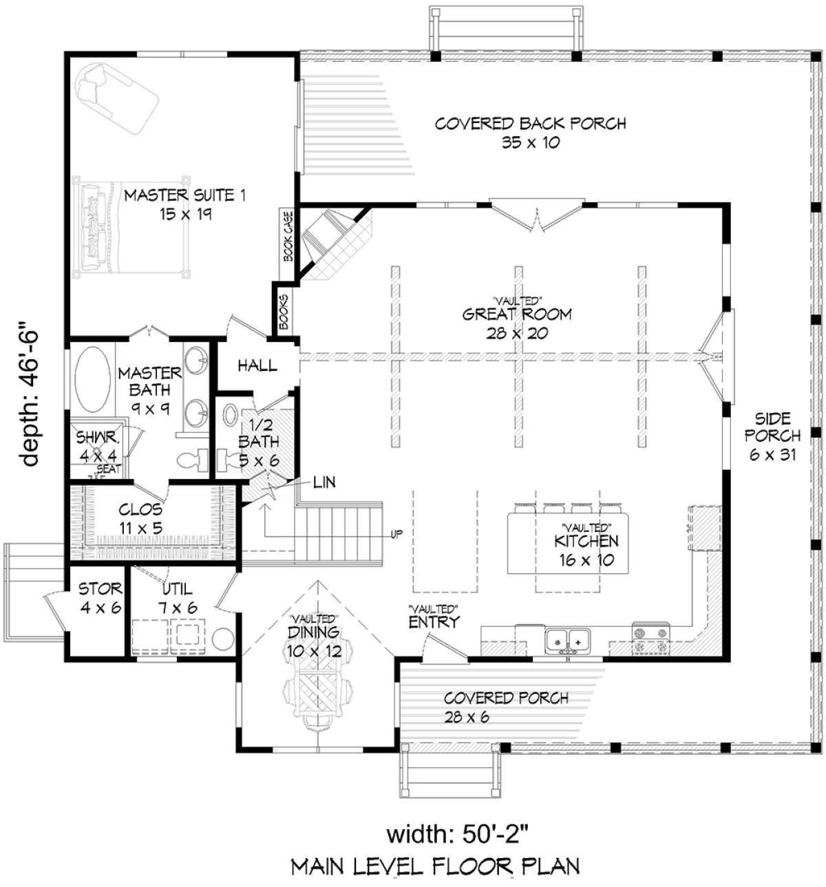 With overall dimensions of approximately 50 feet 2 inches wide and 46 feet 6 inches deep, the home maintains a balanced and practical footprint suitable for many lot sizes. 2