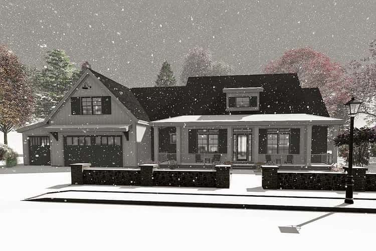 Modern Farmhouse Plan with Large Wrap-Around Porch and Rear Entry Garage
