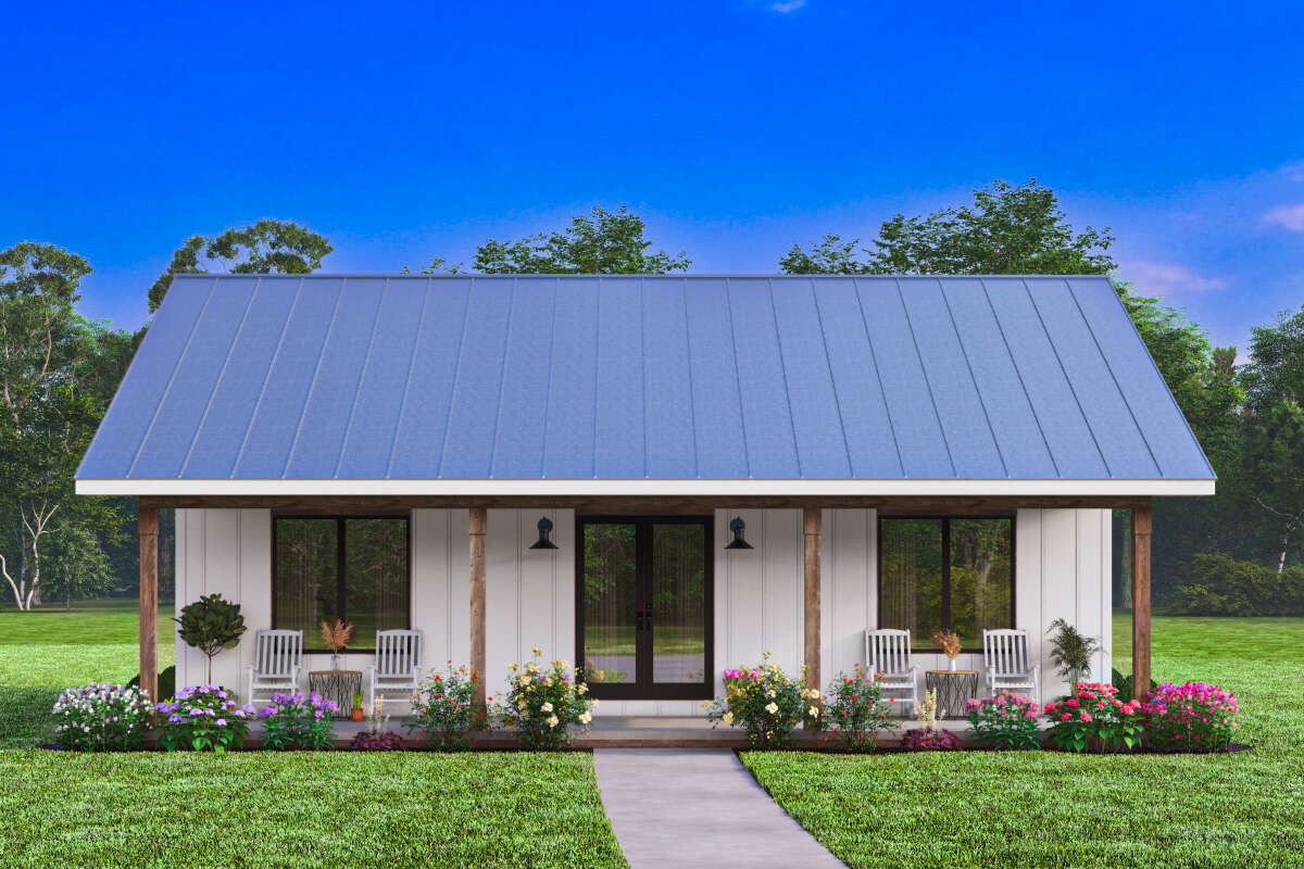 this country house plan is designed for simplicity, comfort, and affordability, making it ideal for small families, couples, or downsizers. 0