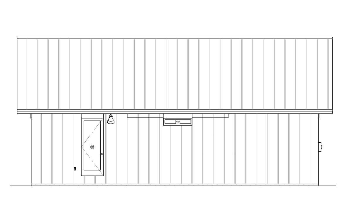 The exterior presents a clean and traditional country style with a compact footprint and balanced proportions. Its modest size and straightforward design make it easy to build and maintain.