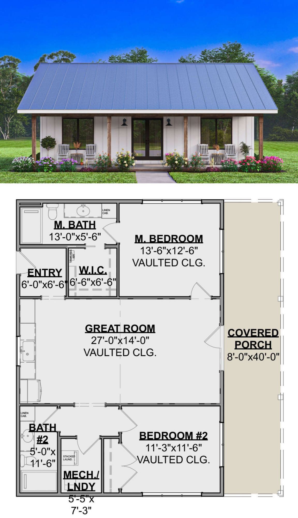 With overall dimensions of approximately 36 feet wide and 40 feet deep, the home is perfect for smaller lots or rural settings. 1