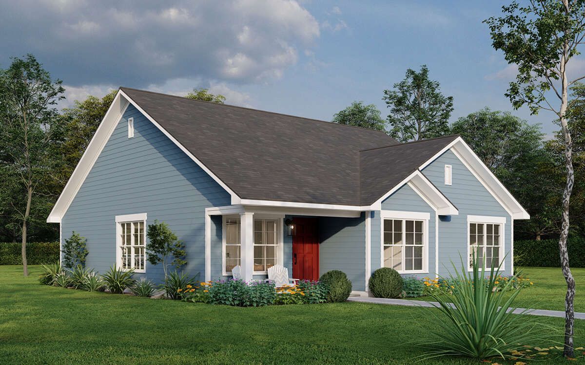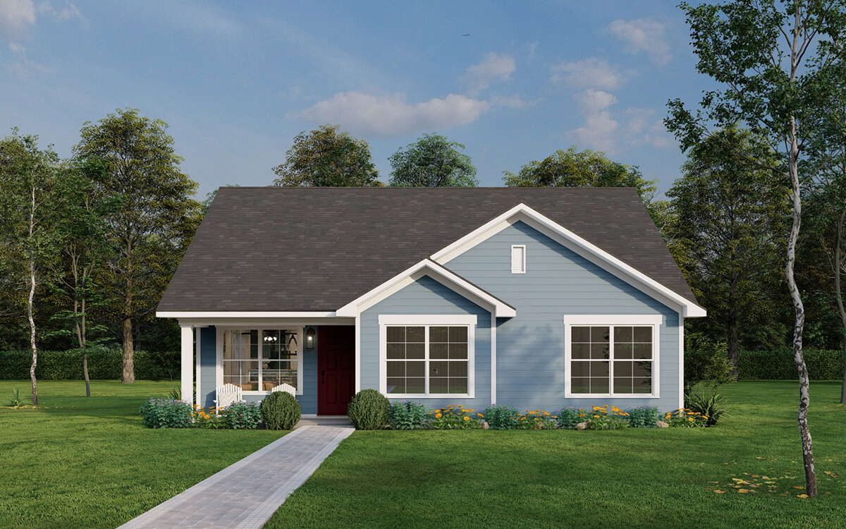This home is designed to maximize comfort within a modest size. The open layout, practical room arrangement, and simple structure make it cost-effective to build.