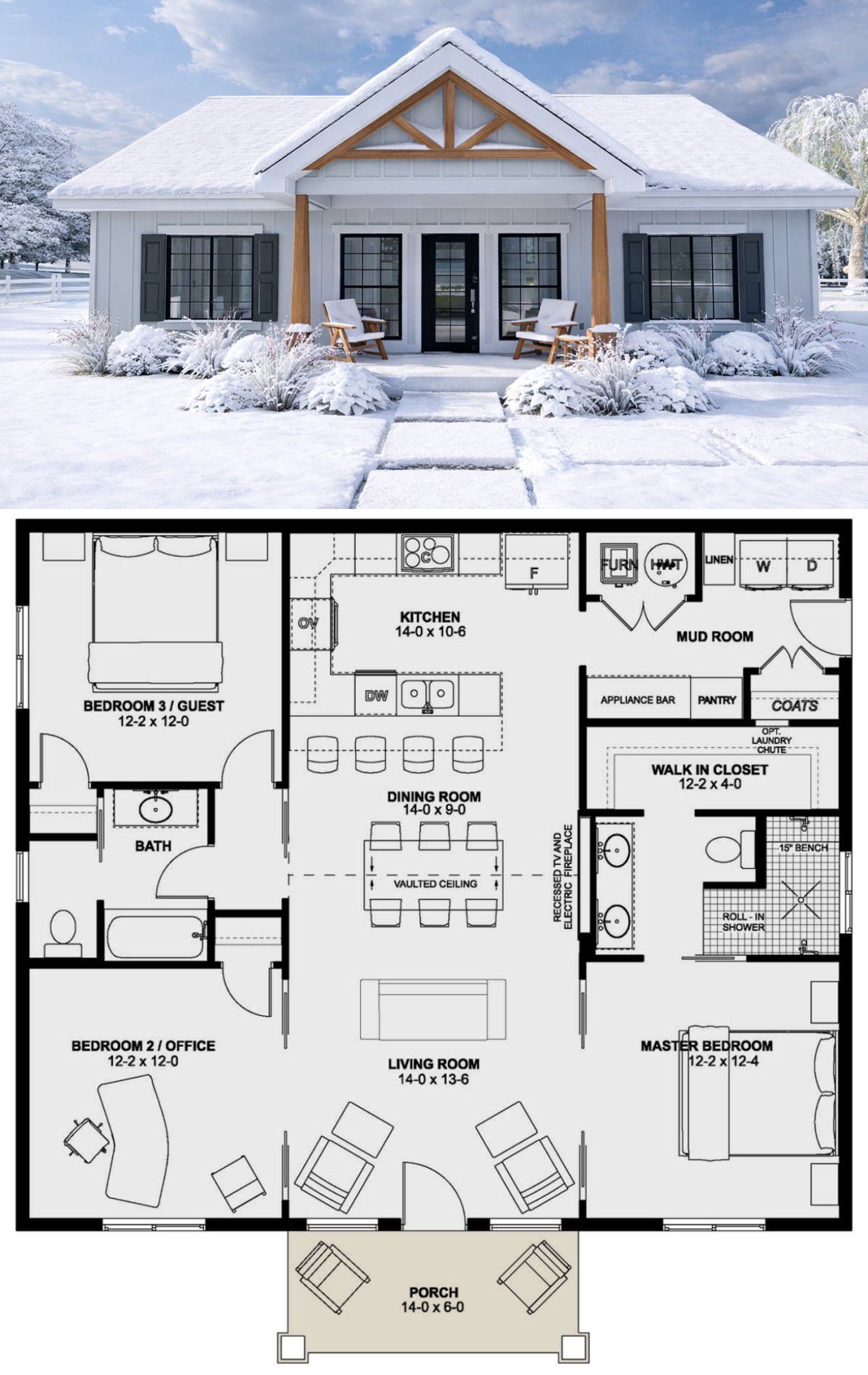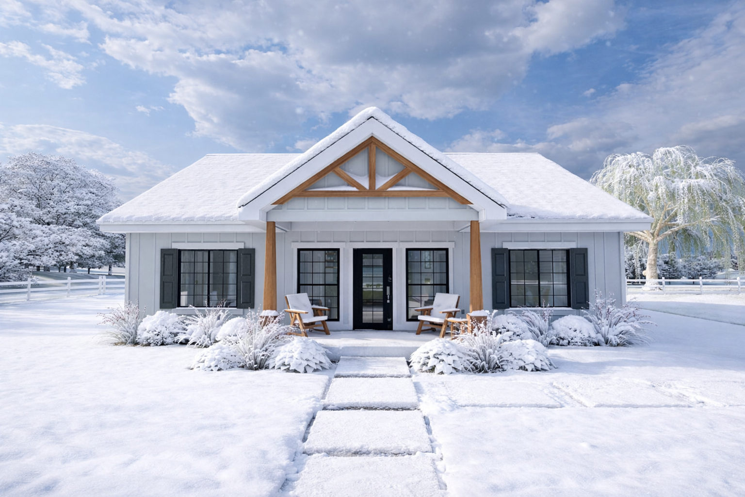 The modest size and clean lines make it easy to build while still maintaining a warm and inviting appearance that works well in both rural and suburban settings.