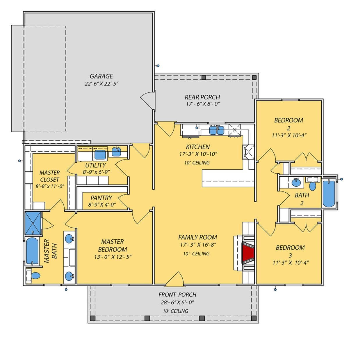 Country House Plan – 1,422 Sq Ft, 3 Bedrooms, 2 Bathrooms