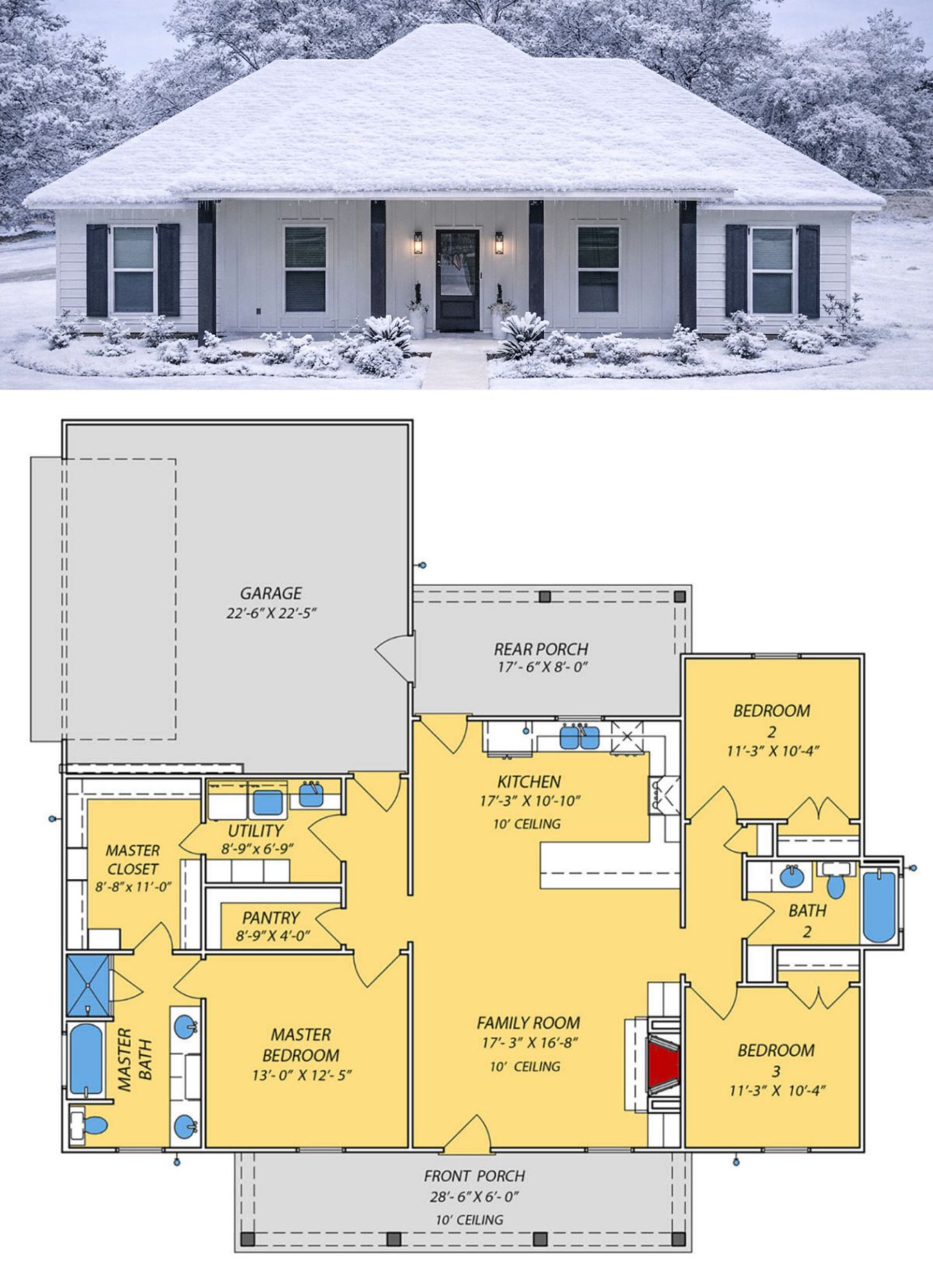 this country house plan is designed to provide comfort, simplicity, and efficient use of space, making it ideal for modern family living. 0