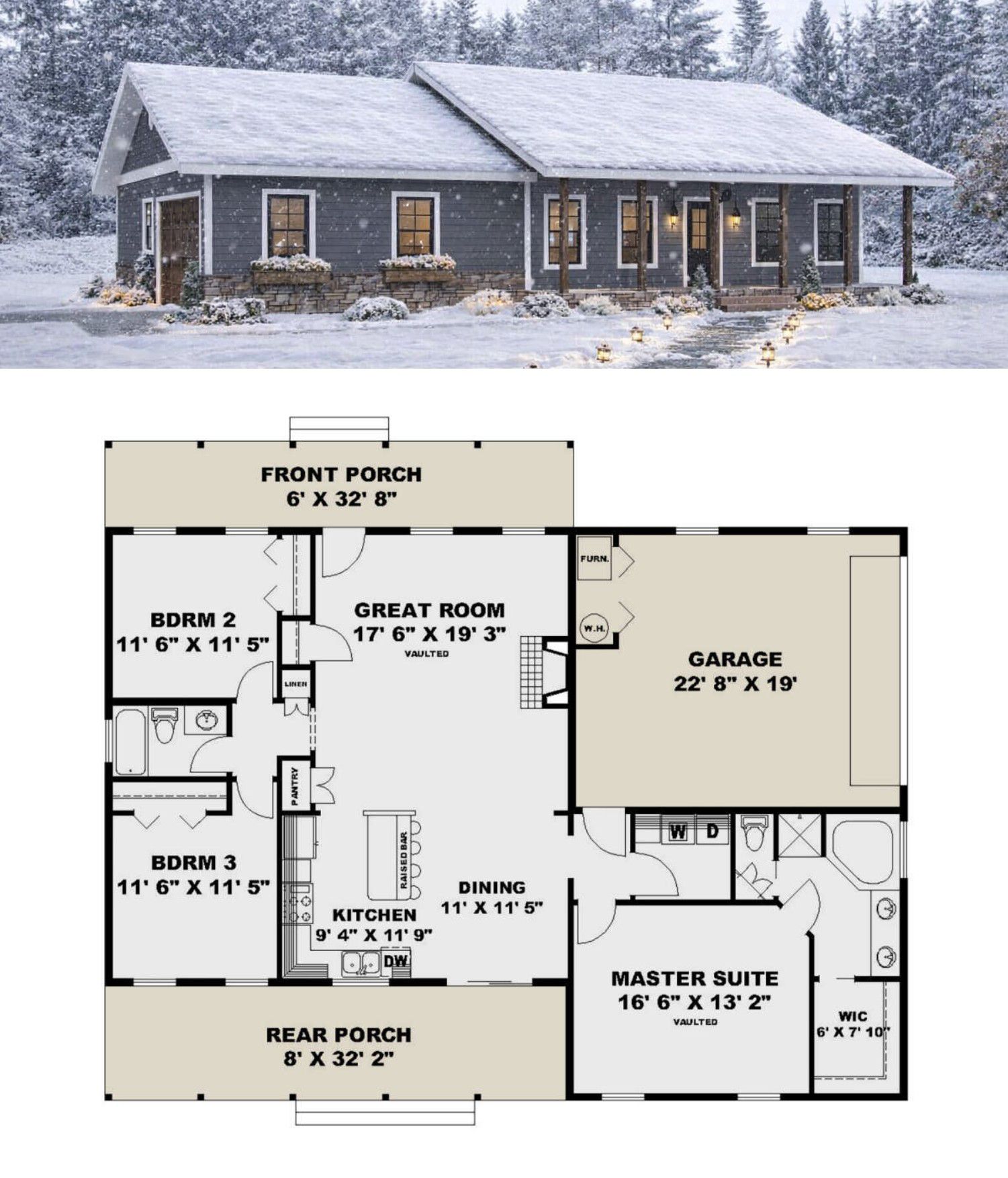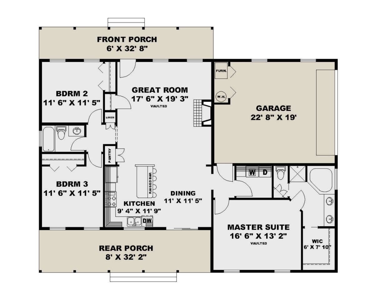 This country house plan offers a perfect combination of simplicity, comfort, and practicality. Its efficient layout, classic design, and functional features make it an excellent choice for homeowners seeking a reliable and inviting single-story home.