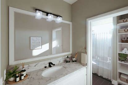 The primary bedroom is positioned to offer privacy and restful comfort away from other bedrooms. 13 Its generous layout accommodates a variety of furniture configurations and feels like a true personal retreat. 14 The attached bathroom includes thoughtful fixtures and storage, making everyday routines easy and organized. 15