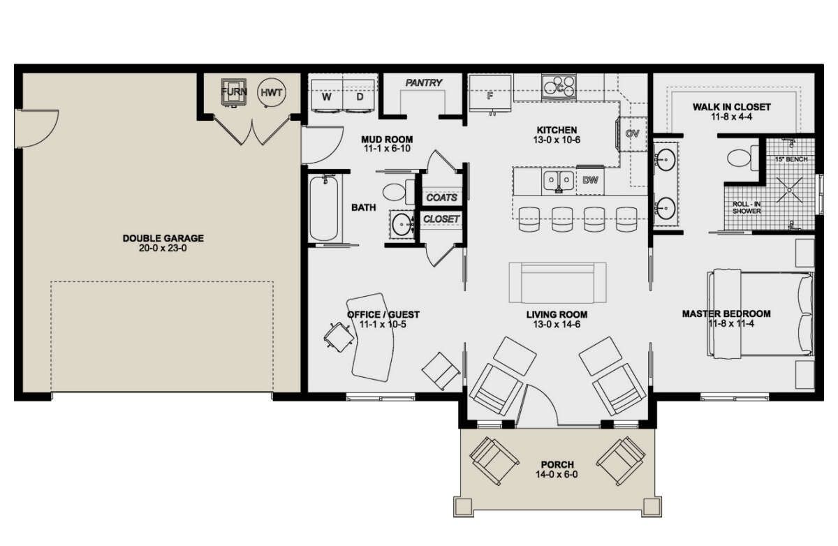 The layout ensures easy movement, accessibility, and low maintenance, making it ideal for small families, couples, or downsizing homeowners.