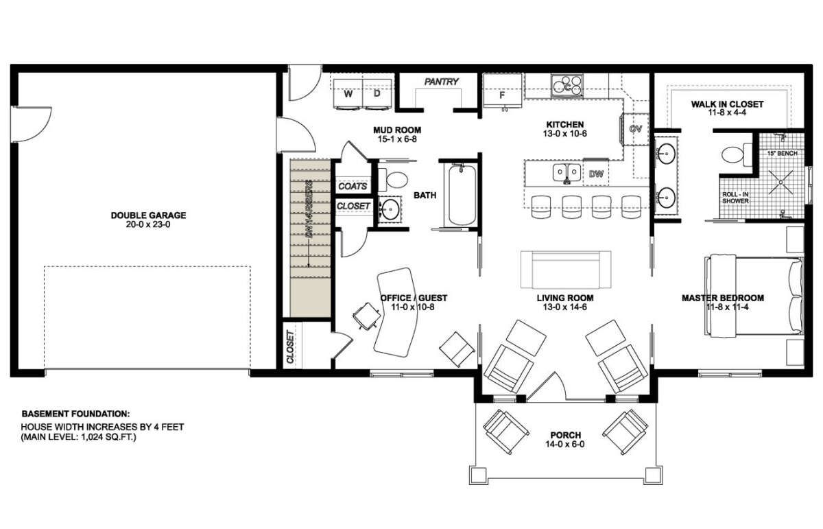 Modern Farmhouse Plan – 1,070 Sq Ft, 2 Bedrooms, 1 Bathroom