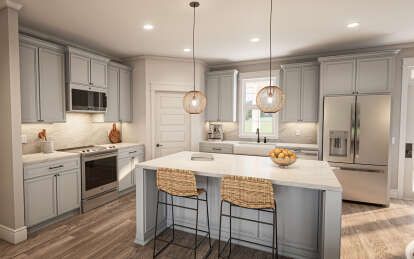 The kitchen is thoughtfully designed for everyday use. 9 With ample counter space and a practical work triangle, it makes meal preparation efficient. 10 An adjoining dining area keeps everyone connected and visible, whether you’re serving dinner or hosting weekend gatherings. 11 Free sightlines from the kitchen to the porch and great room enhance the sense of openness throughout. 12