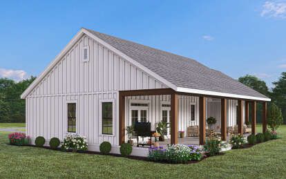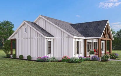 This country house plan thoughtfully blends classic charm with everyday practicality. Its open interior, welcoming porch, efficient flow, and comfortable private spaces make it ideal for families or anyone who values simplicity and style. With smart use of space and thoughtful transitions between shared and private areas, this design supports relaxed living and timeless appeal.