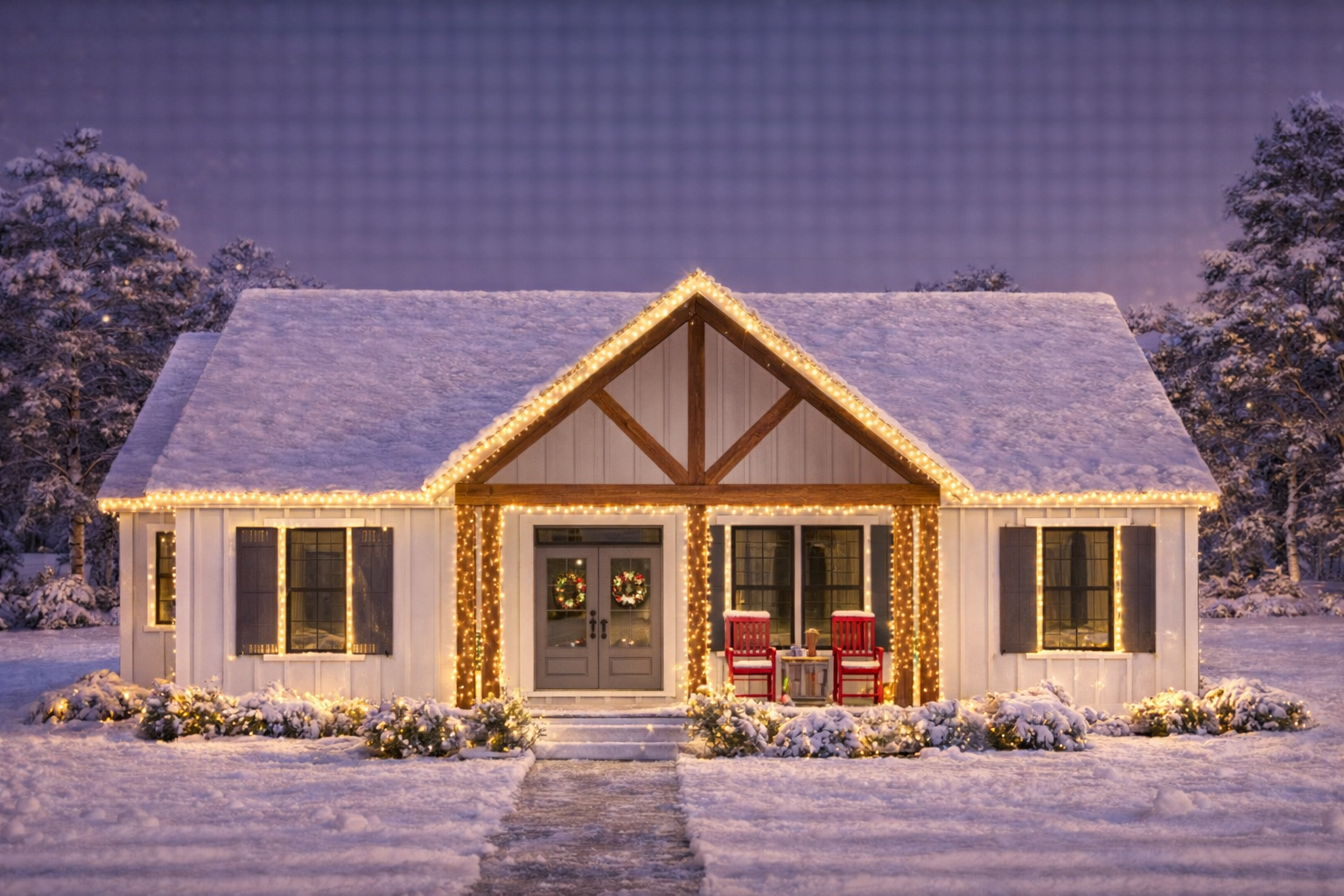 The exterior looks like what many imagine when they picture a classic country home: balanced proportions, simple lines, and a warm presence that fits beautifully into both rural and suburban landscapes. 1 With a footprint of about 44′ wide × 54′ deep, it maintains a compact profile while still feeling substantial. 2 A covered front porch sets a welcoming tone and offers a comfortable outdoor space for morning coffee, evening chats, or simple relaxation. 3