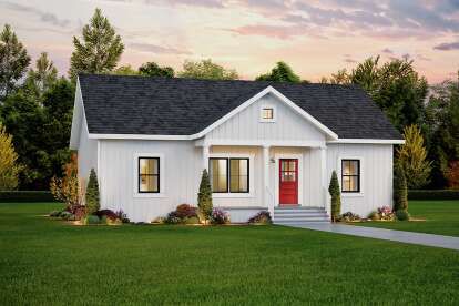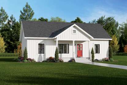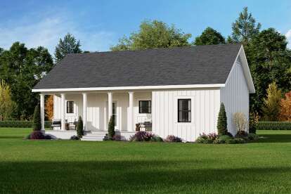 This country house plan merges efficient use of space with everyday comfort and inviting style. Its open central area encourages connection, while the split-bedroom layout supports privacy and flexibility. With classic porch appeal, functional interiors, and bright, welcoming rooms, it delivers everything you need in a compact, well-designed package — ideal for family living, downsizers, or anyone seeking a smartly planned single-story home.