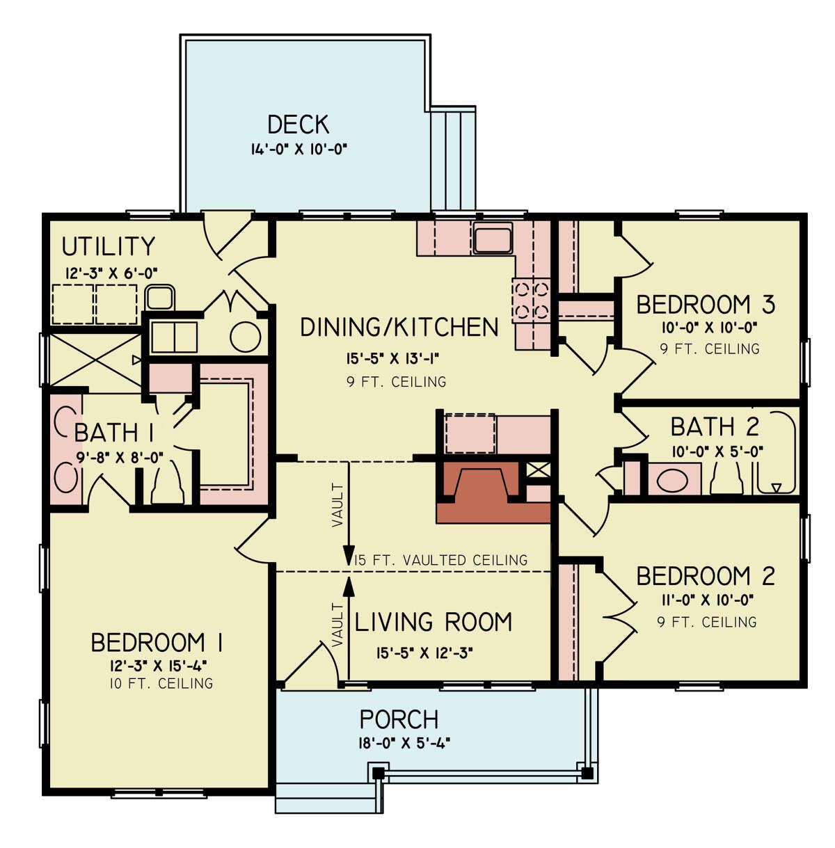 - Open shared living spaces: Maximizes room flow and usability between living, dining, and kitchen areas. ([houseplans.net](https://www.houseplans.net/floorplans/69900408/country-plan-1209-square-feet-3-bedrooms-2-bathrooms))