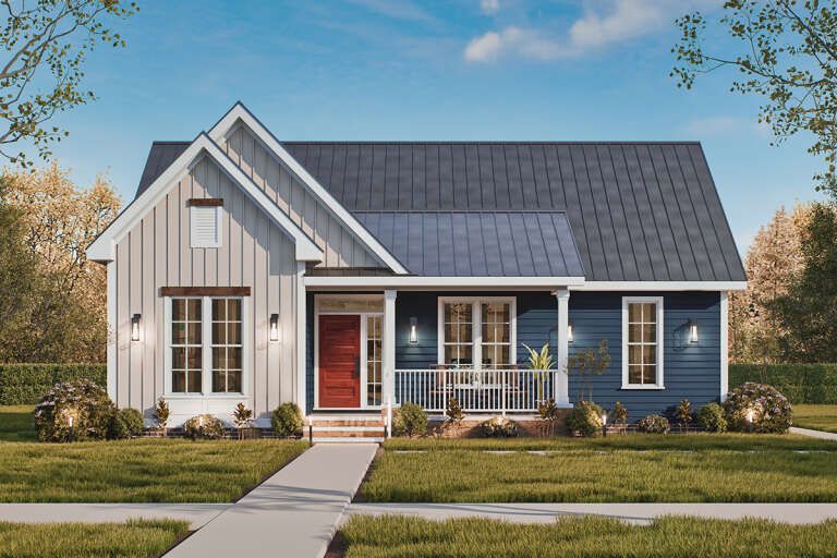 Classic materials such as horizontal siding with trim accents contribute to the home’s timeless aesthetic. The front porch creates a relaxed space to enjoy morning coffee or evening conversations. ([houseplans.net](https://www.houseplans.net/floorplans/69900408/country-plan-1209-square-feet-3-bedrooms-2-bathrooms))