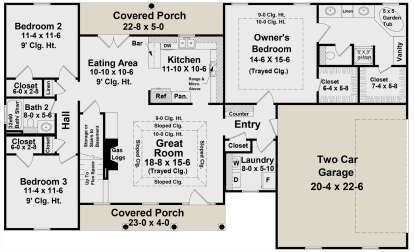 Country Plan – 1,800 Sq Ft, 3 Bedrooms, 2 Bathrooms