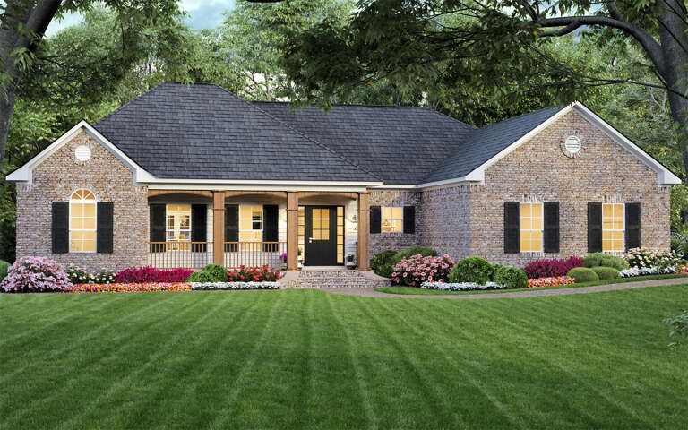 This inviting country-style home plan offers approximately 1,800 square feet of thoughtfully designed single-story living space featuring three bedrooms, two full bathrooms, and a two-car garage. With its balanced proportions and efficient layout, the design blends traditional country charm with practical modern functionality, making it ideal for families, retirees, or homeowners seeking comfortable one-level living. 0