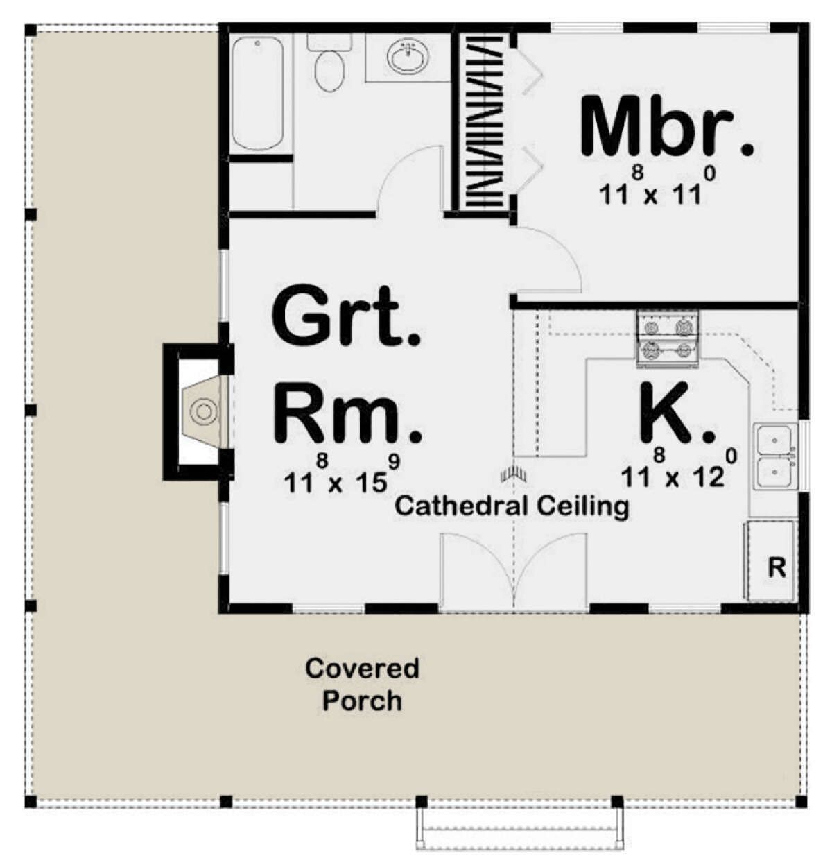 Cozy Cottage House Plan – 576 Sq Ft, 1 Bedroom, 1 Bathroom