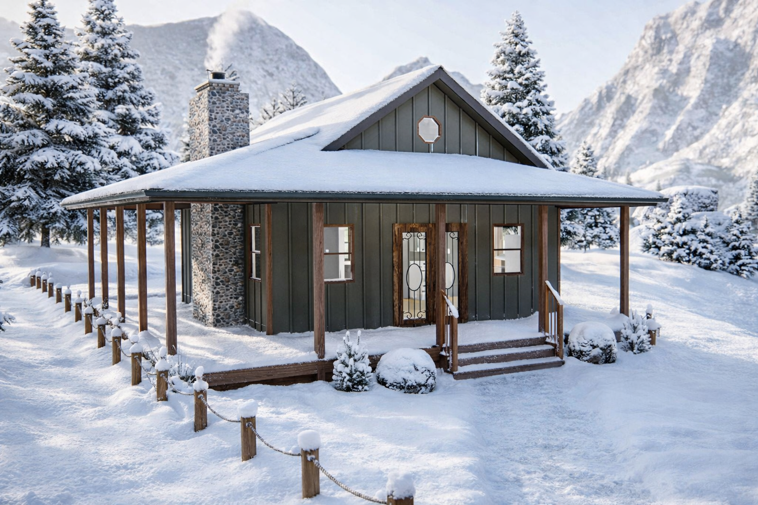 The exterior showcases a warm and inviting cottage style, highlighted by a wraparound porch that adds both character and functionality. 1 The home measures approximately 32 feet by 32 feet, making it perfect for small or narrow lots while still offering a balanced and attractive appearance. 2