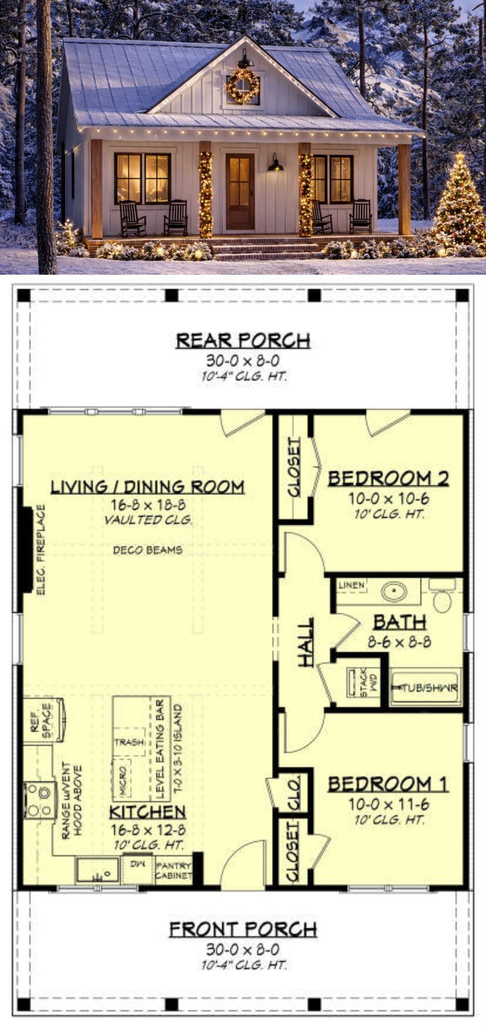 This delightful cottage plan provides about 960 sq ft of inviting, efficiently organized space that feels larger than its modest footprint. Designed with 2 bedrooms and 1 full bathroom, this home blends classic cottage charm with thoughtful modern conveniences in a single-story layout that’s perfect for small families, downsizers, vacation homes, or anyone who loves cozy, functional design. 0