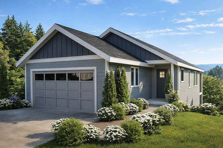This plan typically includes an attached garage or optional configuration, providing space for vehicles, storage, or workshop use depending on customization preferences.