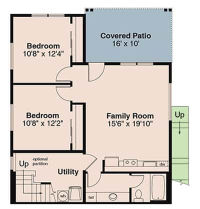 • Covered porch: Extends usable living space outdoors.