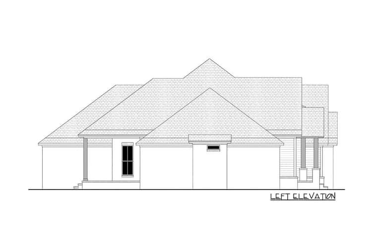 The footprint measures roughly 76′ 4″ wide by 67′ 4″ deep. 1 The maximum ridge height is around 28′ 3″, giving the home steady presence without being overly tall. 2