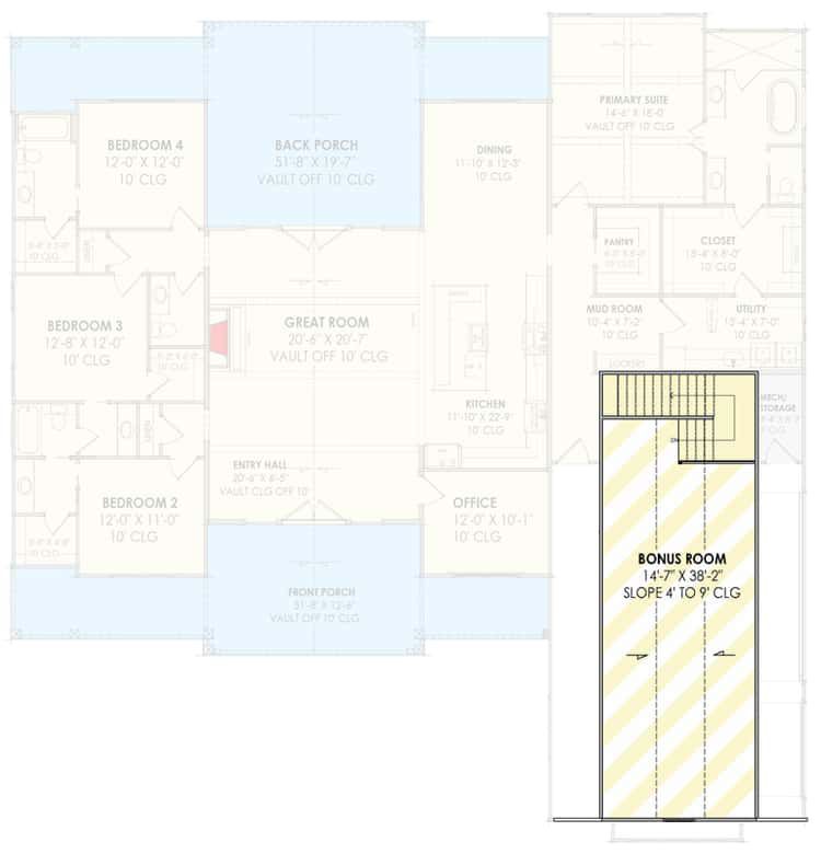 - Considerations: The footprint (~76′×67′) requires a generous lot and favorable setbacks; finishing the bonus room or opting for premium finishes will increase cost; large porches and double garage may add to ongoing maintenance or climate-control demands.