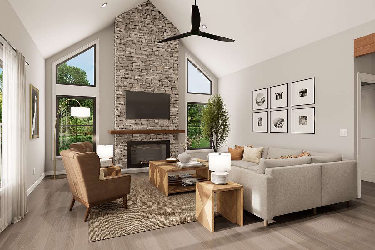 Generous windows and smartly placed openings bring natural light into major living spaces, creating bright interiors that invite connection to outdoor views. 24 This design choice enhances both comfort and ambiance, making even quieter moments feel warm and uplifting. 25