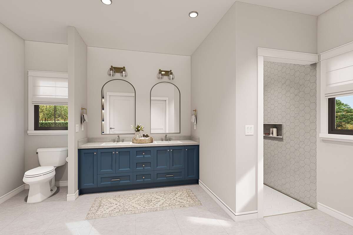 This plan offers flexibility in bedroom configuration, allowing you to customize the layout to your needs — from a 2-bedroom retreat with extra living space to a full 4-bedroom family home. 13 The bedrooms are positioned to support privacy and comfort, with cozy nooks and ample light in each space. 14 Shared full bathrooms are thoughtfully placed for convenience without sacrificing separation from busy living areas. 15