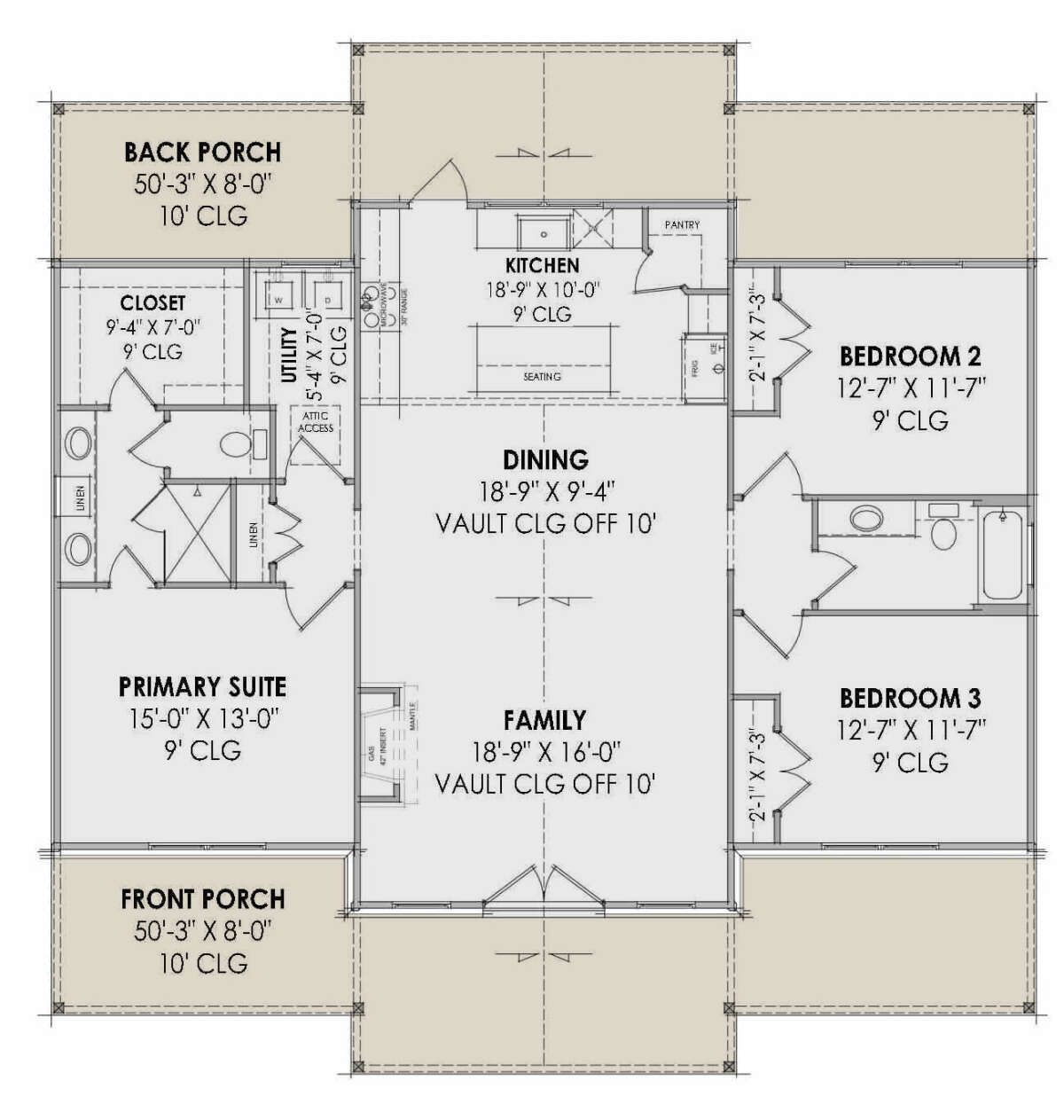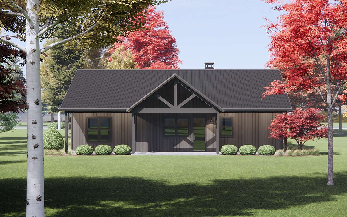 This design does not include a garage, allowing for a more compact footprint and reduced construction cost.