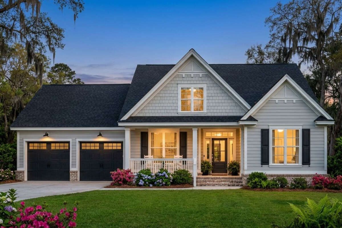 The exterior showcases classic Craftsman charm with a balanced footprint measuring approximately 52 feet 8 inches wide and 56 feet deep. These proportions create a strong yet welcoming presence suitable for a variety of lot sizes. 1A covered front porch of about 120 square feet enhances curb appeal while providing a relaxing outdoor space. The home features a 7:12 roof pitch, contributing to its traditional Craftsman character and efficient water drainage. 2Craftsman homes are known for their low-pitched roofs, wide overhangs, and inviting porches, all of which create a timeless and grounded aesthetic. 3