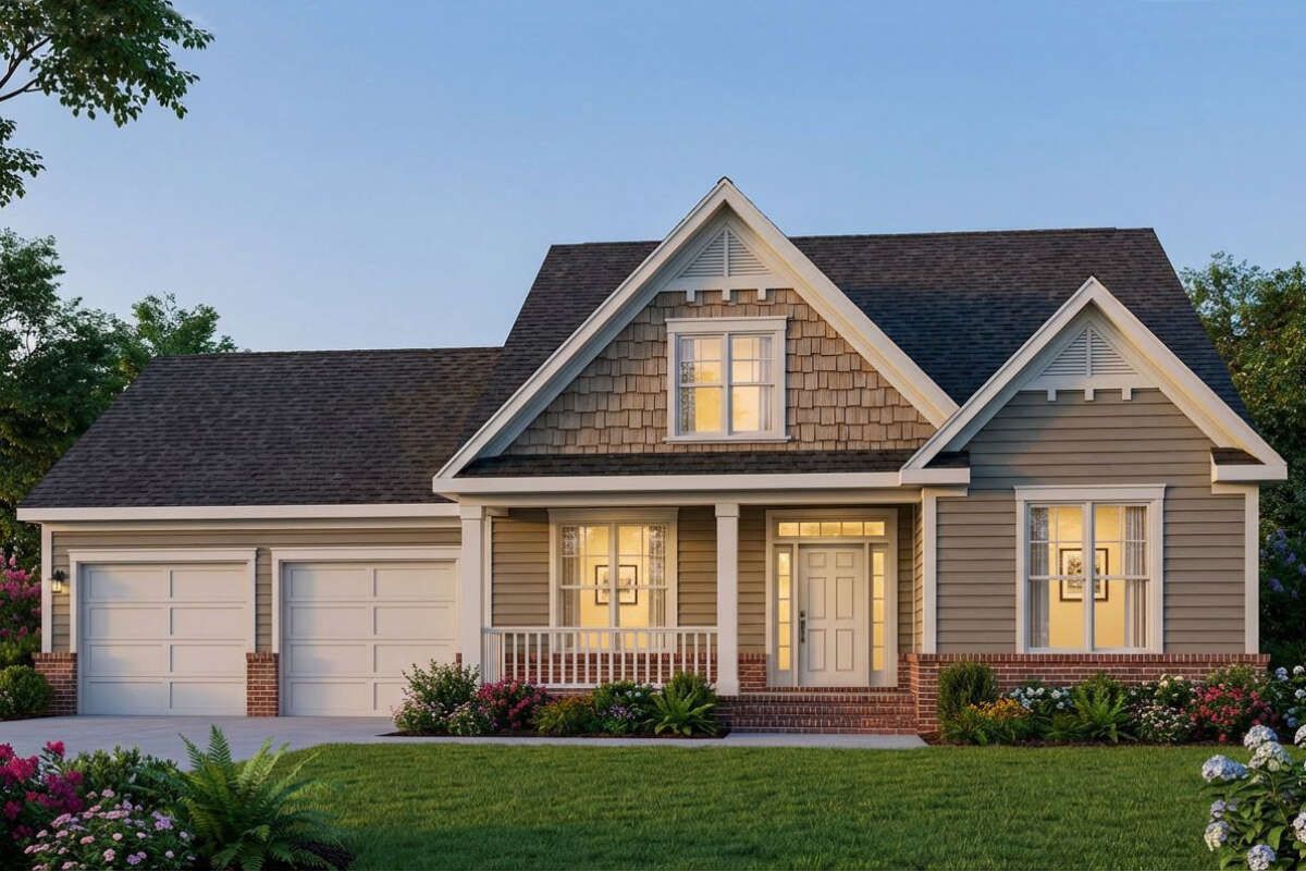 This beautifully designed Craftsman-style home offers approximately 1,660 square feet of heated living space with three bedrooms and two full bathrooms. Designed as a single-story residence, the plan emphasizes comfort, functionality, and timeless architectural character. With its inviting layout and attached two-car garage, this home is ideal for families seeking a warm and practical living environment. 0