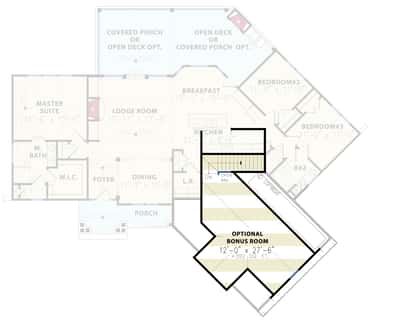 The design includes two full bathrooms on the main level, with the option to add more bathrooms in the expanded bonus or lower-level spaces. 8