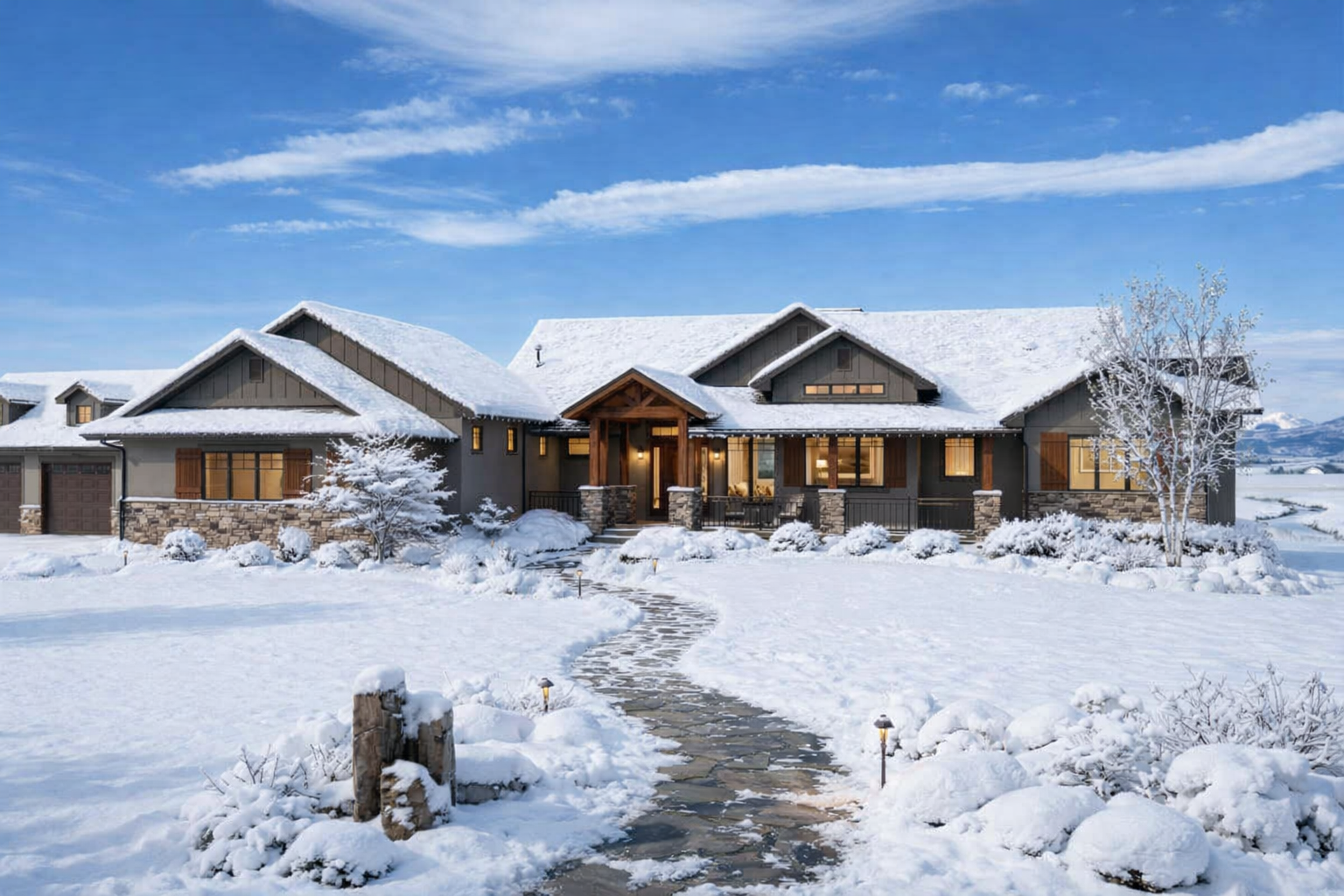 The exterior reflects traditional Craftsman architecture, featuring strong horizontal lines, a low-pitched roof, and a wide footprint of approximately 93 feet 6 inches wide and 85 feet deep. 1 This expansive layout creates a commanding presence while maintaining a warm and welcoming curb appeal.