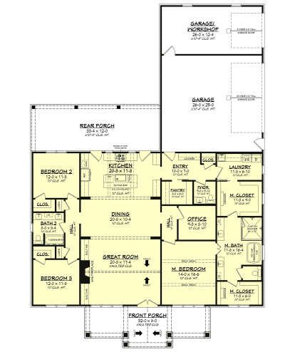 Outdoor living plays a central role in this plan. Both the front porch and a sizeable rear porch provide covered outdoor zones that expand everyday living space and support relaxed enjoyment of the landscape. 4 Whether hosting guests, enjoying a quiet morning, or watching the sunset, these sheltered areas enhance comfort and connection with the outdoors. 5
