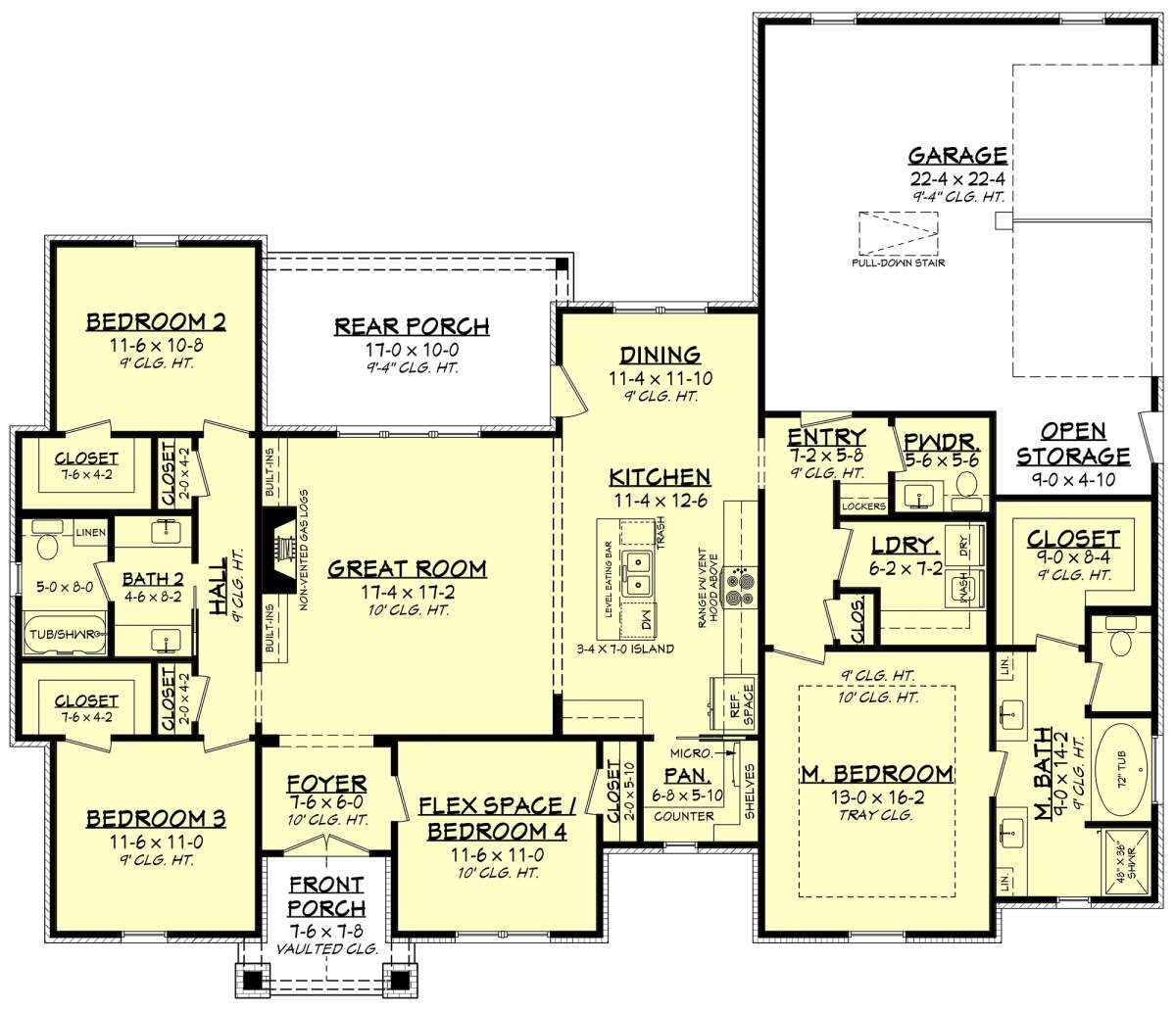 Beyond the main rooms, this Craftsman plan includes the everyday “support spaces” that help life run smoothly. Laundry areas and storage closets help prevent clutter from taking over your living spaces, which keeps the home feeling calm and comfortable.
