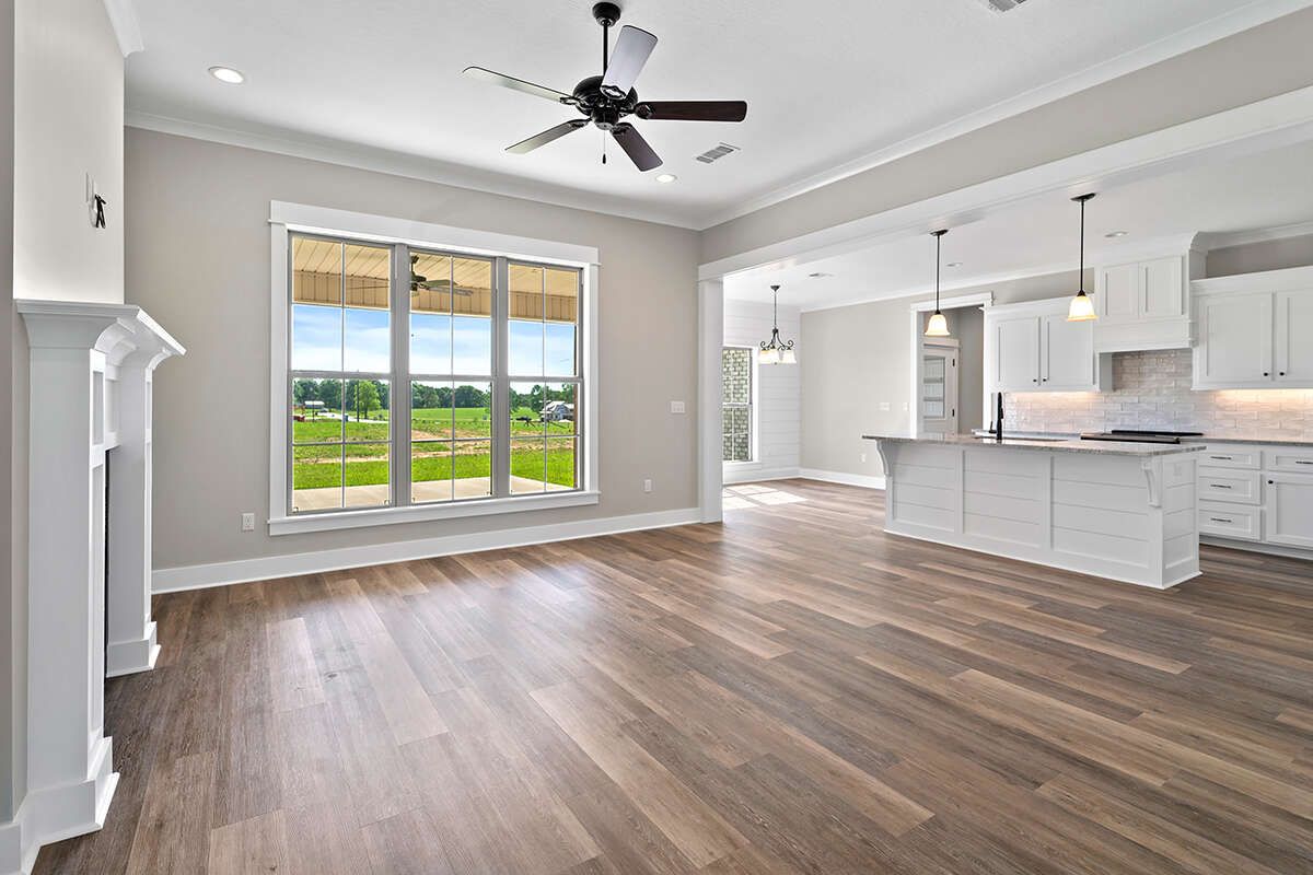 Inside, this home is designed for comfort and connection. The main living spaces are laid out so everyday routines feel smooth and natural. Instead of wasted hallways or awkward room placement, the plan prioritizes flow—making it easy to move between living, dining, and kitchen areas without feeling cramped.