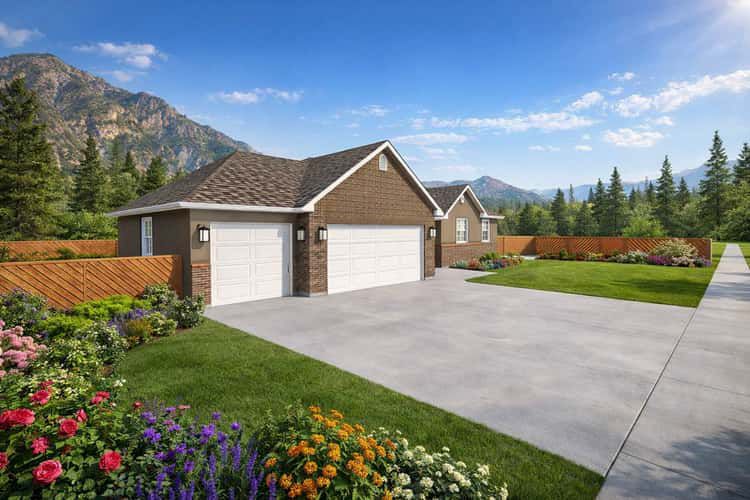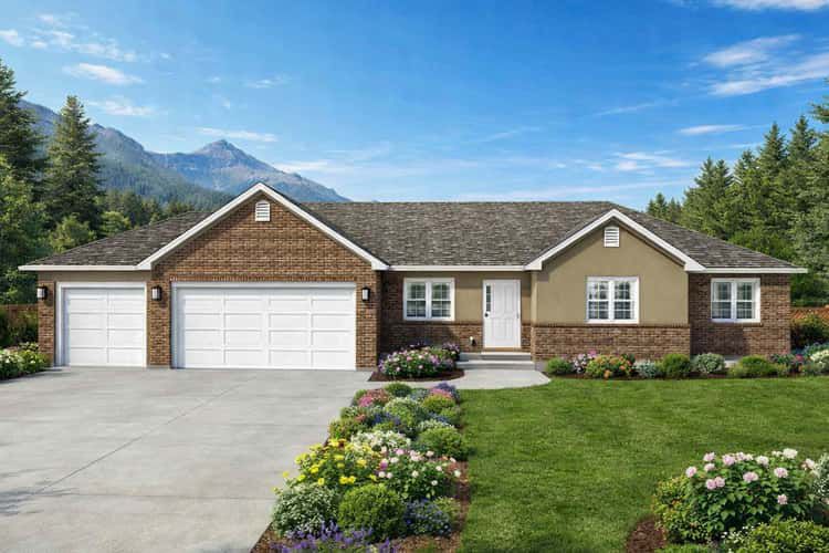The exterior showcases Craftsman ranch character with balanced proportions, a welcoming covered front porch, and traditional detailing that enhances curb appeal. A sizeable three-car garage seamlessly integrates into the home’s façade, offering shelter for vehicles, storage, and hobby space. Durable materials and straightforward rooflines contribute to a design that feels both classic and lasting. 1