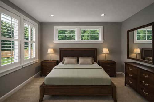 Additional bedrooms are positioned on the opposite side of the home and share a full bathroom, creating a balanced split-bedroom arrangement that supports comfort and privacy. Optional layouts or finished basement space allow for the addition of more sleeping rooms if needed. 6
