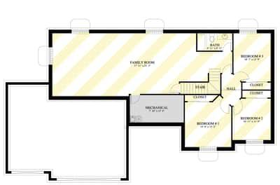 This plan also offers an optional finished basement layout, allowing for significant future expansion. When finished, the lower level can accommodate a large family room, up to three additional bedrooms, and a full bathroom — making it ideal for multi-generational living or as an entertainment hub. 16