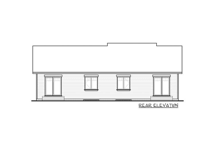 The overall building measures roughly 52′ wide × 36′ deep, with a maximum ridge height of about 20′ 6″. The low, ranch-style roofline and clean rectangular shape make it easy to build and easy to site on a modest lot. Simple siding, a few well-placed windows, and matching front entries give the duplex a calm, balanced presence from the street.