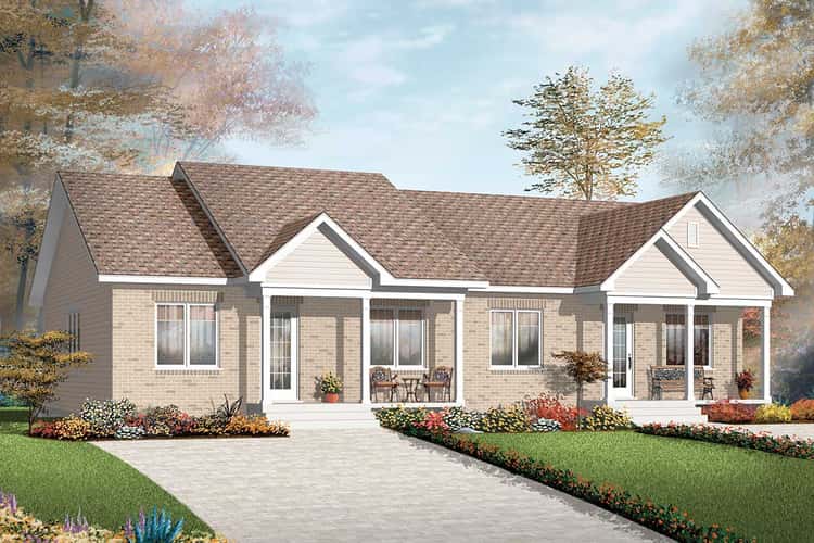 This economical two-family ranch duplex focuses on what matters: simple structure, efficient circulation, and practical room sizes that support comfortable everyday living. Each 2-bedroom, 1-bath unit feels like a complete little home, while the overall 52′ × 36′ footprint keeps land use and build costs under control. For owners seeking rental income, multi-generation setups, or a pair of modest but genuine homes under one roof, this design offers a smart, budget-friendly path to long-term value.